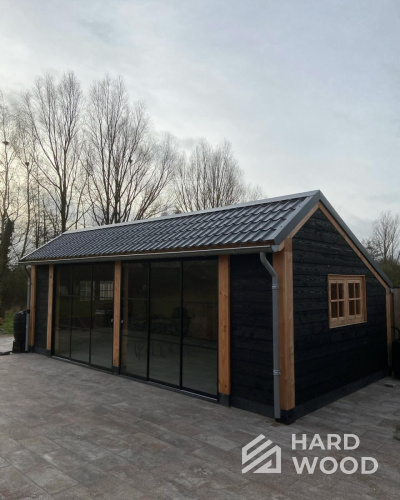 Лофт вырос из индустриальной эстетики: прямые линии, понятный каркас, фактура материалов на первом плане. В беседке это выражается в открытых балках, строгой геометрии, крупном остеклении и функциональности каждой детали. Никакой визуальной «тяжести» — только то, что работает на комфорт и стиль.